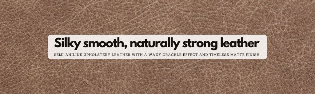 | Average Hide Size: 5.5 Square Meters Average Hide Thickness: 0.9 – 1.1 mm Raw Material: Bovine Origin: Exotic Tanning Type: Chrome Tanning Finish: Semi-Aniline Semi-aniline leather with waxy crackle effect Smooth, silky hand feel with a soft touch Gentle matte finish for understated elegance Designed to resist scratching and wear Minimal colour variation for uniform upholstery results |