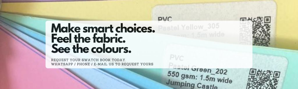 | 🎪 550gsm Medium duty (high stock levels) | 1.5/3m | Standard | Bakkie covers, tents, tarp covers. Pastel colours can be used for jumping castles | [Download TDS] |